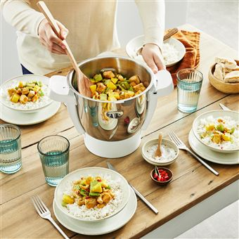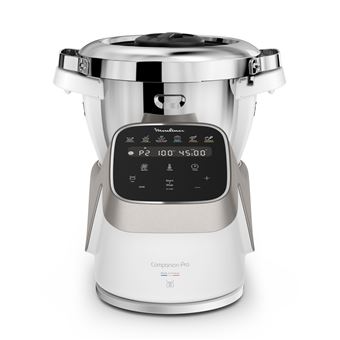 Le Moulinex Companion Pro + Cuiseur vapeur est le robot cuiseur tout-en-un qui pèse, prépare et cuit vos plats en toute simplicité. Fabriqué en France, il intègre une balance précise au gramme près, un bol grande capacité de 4,5 L (jusqu’à 10 personnes) et 16 modes automatiques pour réussir facilement toutes vos recettes, de l’entrée au dessert. le Companion Pro est l’allié idéal pour une cuisine maison généreuse, pratique et durable.